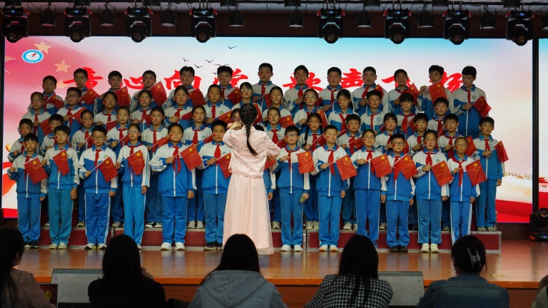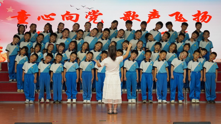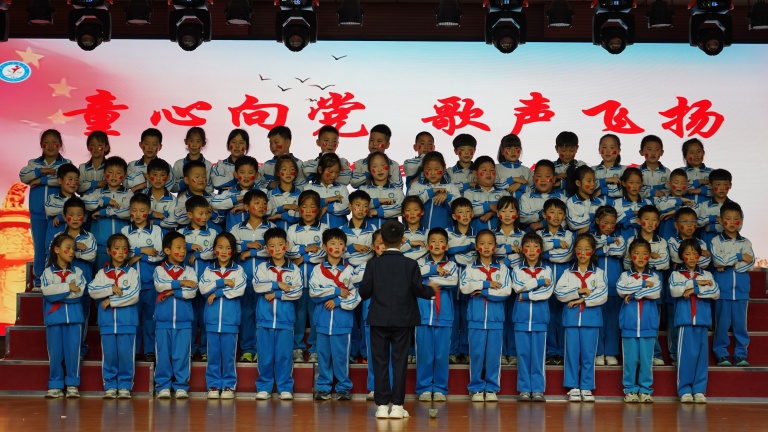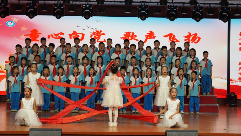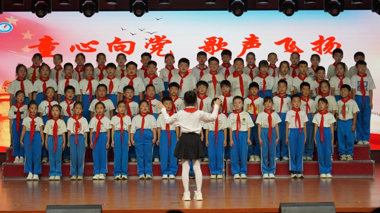 三、四年级以《团结就是力量》为必选曲目,稚嫩却坚定的歌声诠释着“团结”的意义,《少年有志》《童心向党》《大中国》等自选曲目更让现场充满童真与热忱。