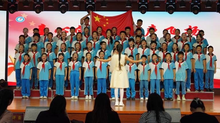 为庆祝中华人民共和国成立76周年,弘扬爱国主义精神,展现少先队员积极向上的精神风貌,9月26日、28日,新乐市实验学校小学部分批次举行了“童心向党 歌声飞扬”红歌合唱比赛。