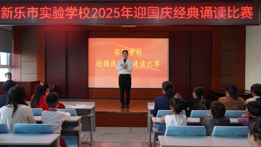 金桂飘香、举国欢庆,看今朝繁荣,忆往昔铿锵。为了迎接国庆佳节,弘扬时代主旋律,丰富校园文化生活,营造浓郁的读书氛围。9月24日,新乐市实验学校小学部举行了“童心颂中华,共筑中国梦”的迎国庆经典诵读比赛。