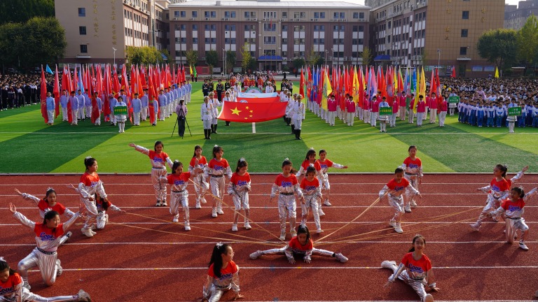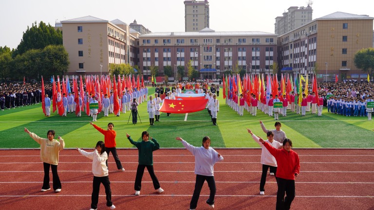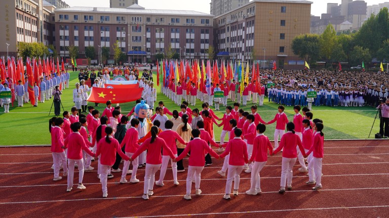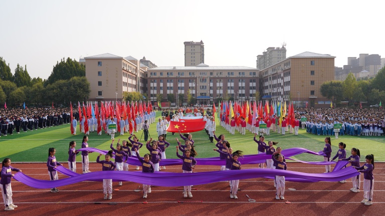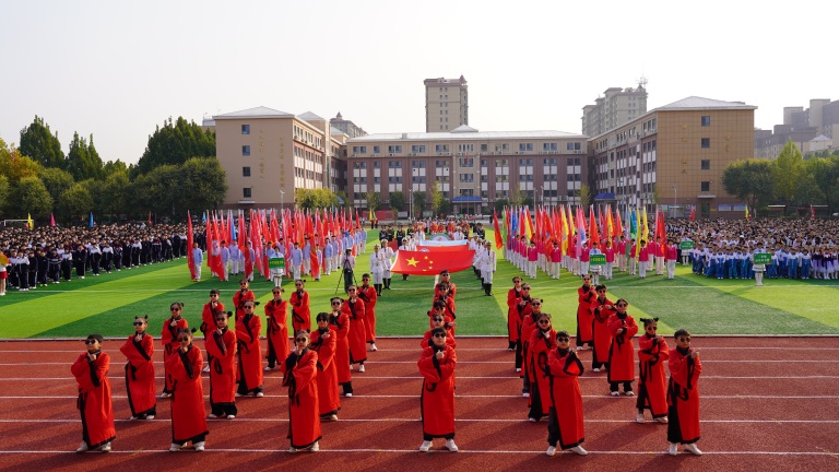 “我宣布,新乐市实验学校2025年秋季运动会正式开幕!”随着成局长一声庄严的宣布,全场顿时爆发出雷鸣般的掌声与欢呼声。