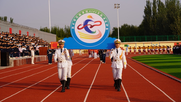 学校党支部书记、校长郝月强致欢迎词。首先,郝校长向莅临的领导、来宾表示欢迎,向筹备人员及运动员致以问候;其次,他回顾了我校体育工作成果,以及我校学子获国防技能大赛第一、足球联赛亚军等佳绩,同时介绍本次运动会筹备充分,设有田赛、趣味赛等多元项目,兼具竞赛性与教育性;最后,他坚信运动会将实现运动成绩与精神文明双丰收,预祝运动员取得佳绩、运动会圆满成功。