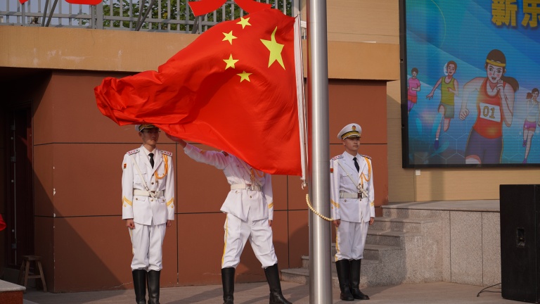 随后,开幕式进入升国旗环节,英姿飒爽的国旗护卫队迈着坚定有力的正步,护卫着鲜艳的五星红旗缓缓入场。在全体师生庄严的注目礼下,雄壮的《义勇军进行曲》响彻云霄,五星红旗冉冉升起,激发了每一个人心中的爱国热情。