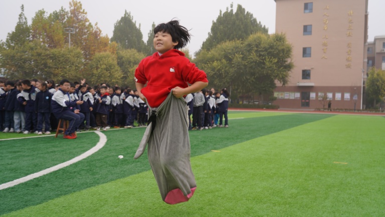 套着布袋的 “袋鼠们” 是赛场上最亮眼的风景线。有的选手蹦得又快又稳,像灵活的袋鼠;有的选手则掌握不好平衡,蹦两步就差点摔出布袋;还有的选手着急接力,蹦到终点时差点 “扑” 进队友怀里。整场比赛笑点不断,欢乐氛围感染了在场所有人。