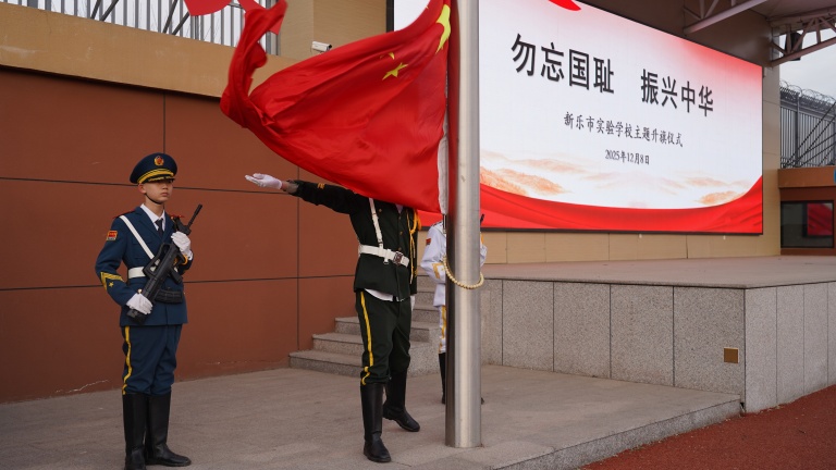 12月13日是南京大屠杀死难者国家公祭日,为缅怀遇难同胞、铭记历史教训、弘扬爱国主义精神,新乐市实验学校在公祭日来临之际,举行“勿忘国耻 振兴中华”主题升旗仪式,全体师生齐聚操场,在庄严肃穆的氛围中寄托哀思、凝聚奋进力量。
