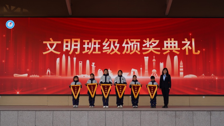 为表彰先进、树立榜样,激发班级集体凝聚力,政教主任李梅为11月份文明班级颁发流动红旗。他们纪律严明、卫生整洁、成绩优异,成为校园文明典范,激励着全体同学奋进前行。