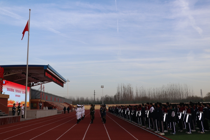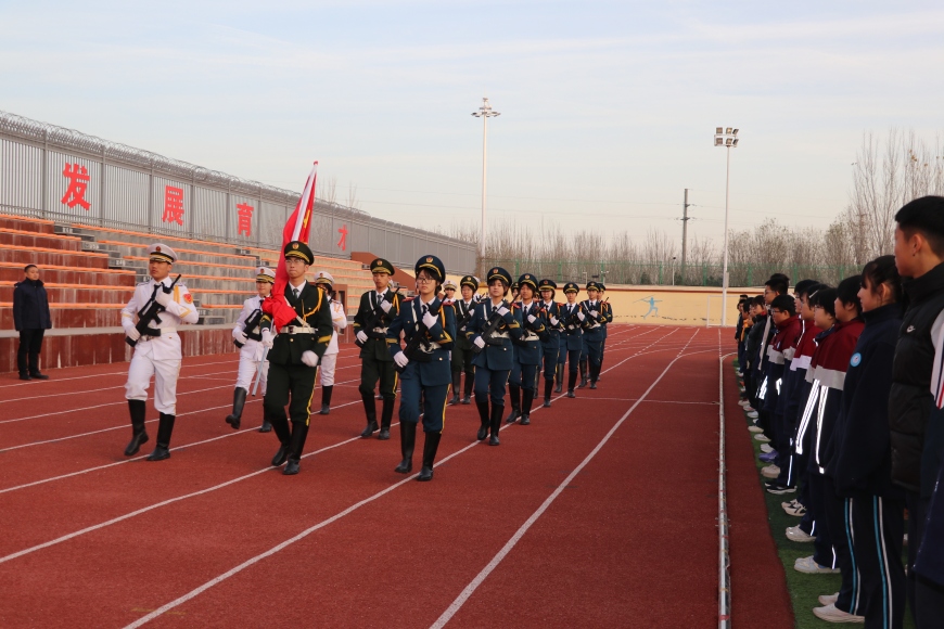 迎着朝阳,顶着寒风,新乐市实验学校的操场上,队列整齐如松,随着主持人庄严宣告,升旗仪式正式拉开帷幕。国旗护卫队队员身着挺拔制服,迈着铿锵有力的步伐,昂首阔步走向旗台,每一步都踏响着奋进的节拍,目光中饱含对国旗的崇敬与热爱。