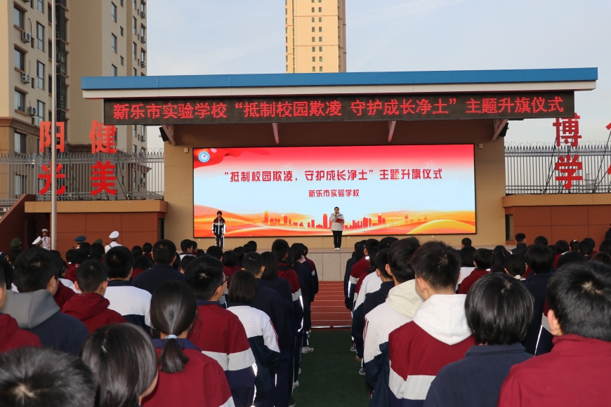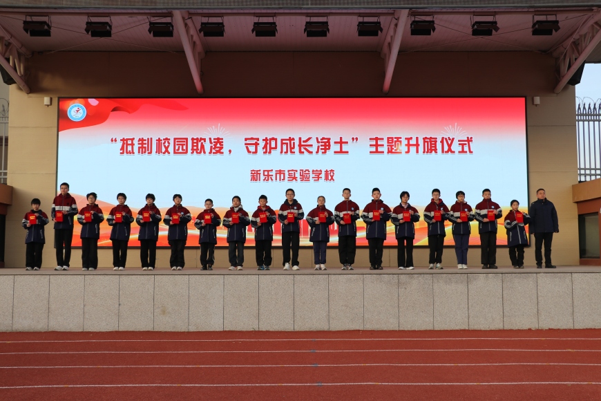 为了预防和减少校园欺凌事件的发生,新乐市实验学校于2025年12月1日举行“抵制校园欺凌,守护成长净土”主题升旗仪式,希望通过这次活动,提高同学们对校园欺凌的认识,增强自我保护意识,共同营造一个和谐、安全的校园环境。